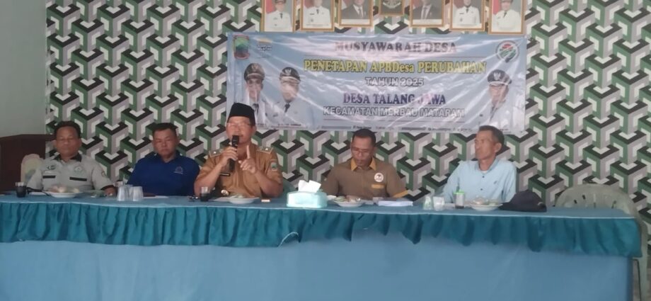 Lampung Selatan, Tranvisi.net – Pemerintah Desa Talang Jawa, Kecamatan Merbau Mataram, resmi menetapkan Anggaran Pendapatan dan Belanja Desa (APBDesa) Perubahan Tahun 2025 melalui musyawarah desa pada Selasa, 23 September 2025. Penetapan tersebut dilakukan di Balai Desa Talang Jawa dengan melibatkan berbagai unsur masyarakat.